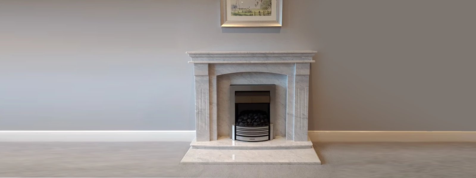 "Here at Bespoke Marble Fireplaces we also manufacture Natural Marble Fire surrounds. Our Natural marble surrounds are available in two colours . Bianco Carrara Gioia the famous Italian marble has a white background with grey/black veins and Crema Marfil from Spain has a beige background colour with brown markings.Natural marbles are a natural product and can have veins, irregular patterns, shakes, pin holes and shade variations which are all part of its natural beauty. Our Natural Marble Fire surrounds can be made in various sizes ranging from 40 inch wide extra petite to the 54 inch wide grand size. Natural Marble fireplaces can also be supplied with down lights. Our Natural Marble fire surrounds can be made suitable to fit against a flat wall with any of our electric fires. A black granite panel and black granite hearth can be supplied instead of the matching natural marble hearth and panel if required.